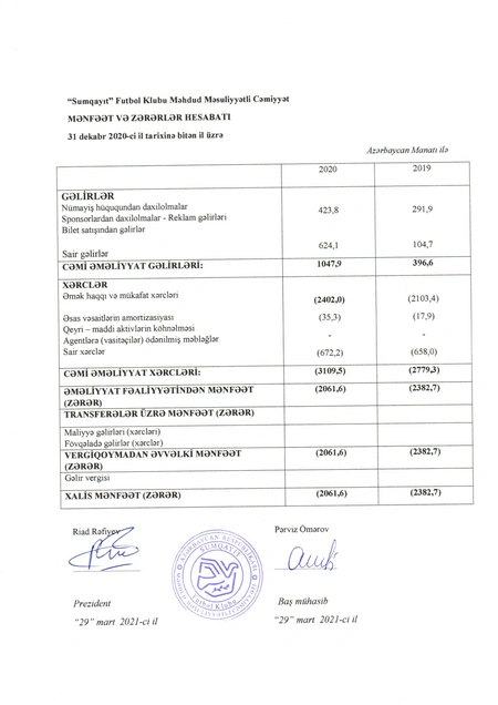 “Sumqayıt Futbol Klubu” MMC 2020-ci ili 2,062 milyon manat zərərlə başa vurub. “Report” klubun maliyyə hesabatına istinadən xəbər verir ki, zərər 2019-cu ilə nisbətən 13,5% azdır.