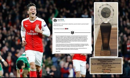Eyni zamanda yazıda Özilin Vətən müharibəsi dönəmində tvitterdə paylaşım edərək bu sözlərlə Azərbaycana dəstək olduğu xatırladılıb: "Bütün dünya Dağlıq Qarabağ bölgəsinin hüquqi və beynəlxalq səviyyədə Azərbaycanın bir hissəsi olduğunu və qanunsuz işğal edildiyinin fərqinə varmalıdır. 2008-ci ilin martında Birləşmiş Millətlər Təşkilatı Azərbaycanın ərazi bütovlüyünü qəbul edib və Erməni silahlı birləşmələrinin ərazidən çıxarılmalı olduğunu təsdiqləyib. Birləşmiş Millətlər Təşkilatı başda olmaqla, əksəriyyətin bölüşdüyü fikri dəstəkləyirəm, Azərbaycanın Dağlıq Qarabağ bölgəsindəki silahlı qarşıdurmalar ciddi həyəcanvericidir, beynəlxalq sülh və təhlükəsizliyi təhdid edir".