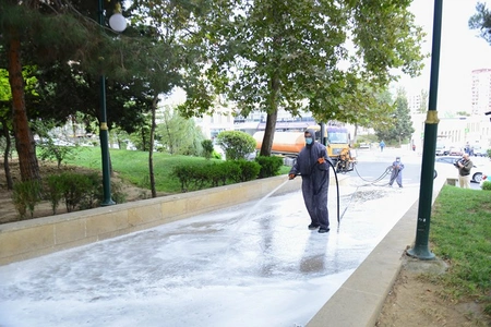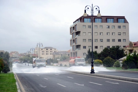 Bakı Şəhər İcra Hakimiyyətinin Mətbuat Xidmətindən verilən məlumata görə sentyabr ayının 25-də səhər saatlarından etibarən Bakı Şəhər İcra Hakimiyyətinin strukturları tərəfindən həyata keçirilən əlavə gücləndirilmiş dezinfeksiya işləri zamanı paytaxtda 550 küçə dezinfeksiya olunub.