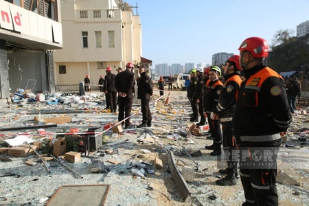 "Report" xəbər verir ki, bunu jurnalistlərə açıqlamasında Fövqəladə Hallar Nazirliyinin Xüsusi Riskli Xilasetmə Xidmətinin idarə rəisi Toğrul Mehdiyev deyib. O bildirib ki, hadisə yerində əməliyyat şəraiti qiymətləndirilərkən beşmərtəbəli ofis binasında yanğınla müşayiət olunmayan partlayışın baş verdiyi və dağıntıların yarandığı müəyyən edilib.