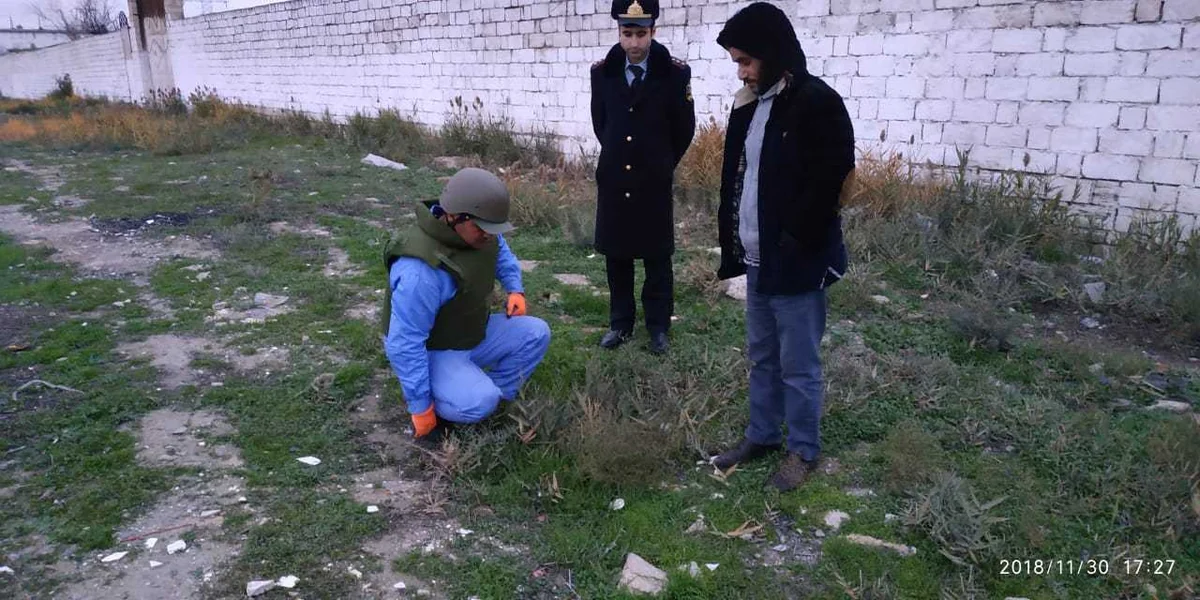 Əl qumbarasının tapıldığı yerin ətrafında 100 kv.m əraziyə yerüstü baxış keçirilib, əlavə təhlükəli əşya və qurğu aşkarlanmayıb.