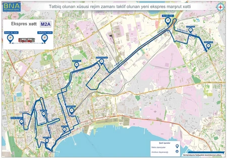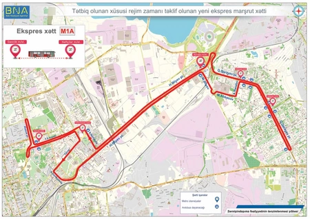 Bakı Nəqliyyat Agentliyindən (BNA) "Report"a verilən məlumata görə, saat 06:30-dan 21:00-dək fəaliyyətdə olacaq ekspres xətlər üzrə “BakuBus” MMC-nin istismarında olan 12 metrlik müasir və komfortlu avtobuslar sərnişinlərin xidmətində olacaq. Tələbata uyğun olaraq xətlərə 18 metrlik avtobuslar da cəlb olunacaq: