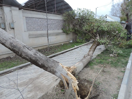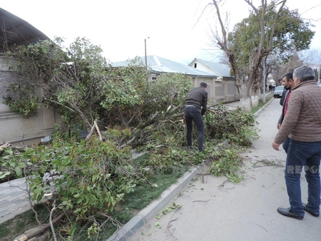 ”Report”un Yuxarı Şirvan bürosu xəbər verir ki, külək rayonun Heydər Əliyev prospektində iri ağacları aşırıb. Ağaclardan birinin iri qolu piyada səkisinin, digər qolu isə vətəndaşa məxsus çardağın üstünə düşüb.