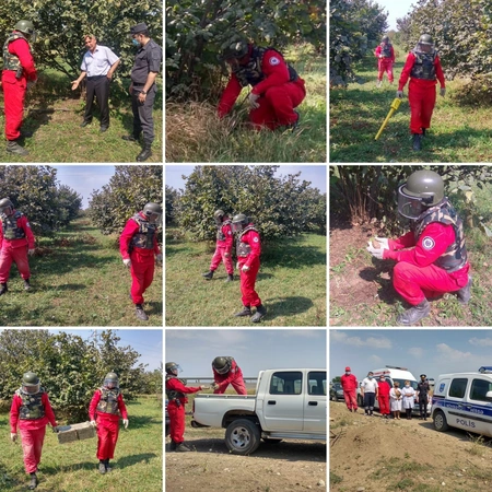 Agentliyin mütəxəssisləri və Qazax RPŞ-nin əməkdaşları tərəfindən birlikdə yuxarıda adı qeyd olunan əraziyə baxış keçirilib. Təhlükəsizliyi təmin etmək məqsədilə ərazi polislər tərəfindən mühasirəyə alınıb. Agentliyin mütəxəssisləri tərəfindən aparılan təcili təxirəsalınmaz əməliyyat-axtarış tədbirləri nəticəsində 1 ədəd F-1 əl qumbarası aşkar olunub, zərərsizləşdirilməsi üçün götürülərək Agentliyin mərkəzi məhvetmə ərazisinə daşınıb.