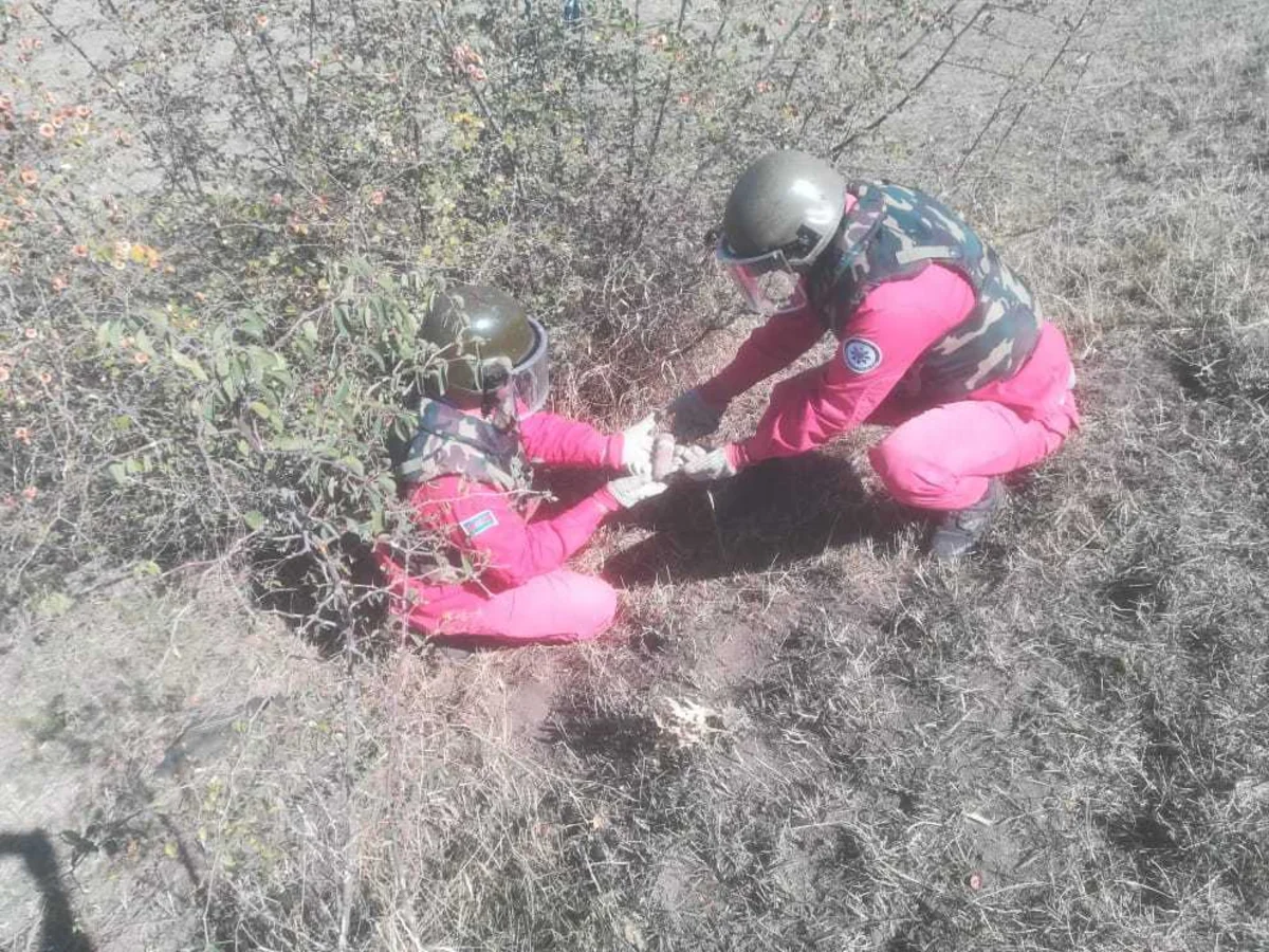 Agentliyin mütəxəssisləri və DSX əməkdaşları tərəfindən birlikdə ərazidə əkin sahəsinə baxış keçirilib. Təhlükəsizliyi təmin etmək məqsədilə ərazi sərhədçilər tərəfindən mühasirəyə alınıb. Agentliyin mütəxəssisləri tərəfindən aparılan təcili təxirəsalınmaz əməliyyat-axtarış tədbirləri nəticəsində 9 ədəd (tərkibində heç bir partlayıcı maddə olmayan) 45 mm-lik top mərmisi (8 ədəd OR-240 və 1 ədəd BR-240) aşkar olunub, zərərsizləşdirilməsi üçün götürülərək agentliyin mərkəzi məhvetmə ərazisinə daşınıb.