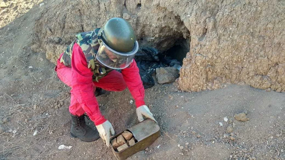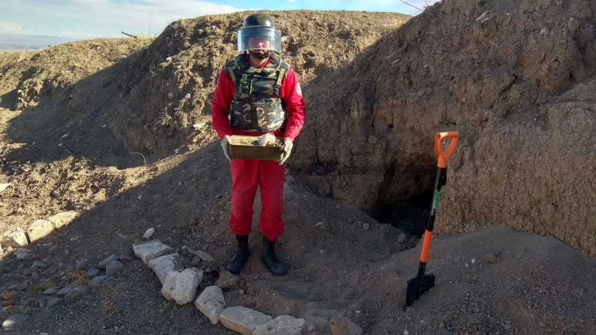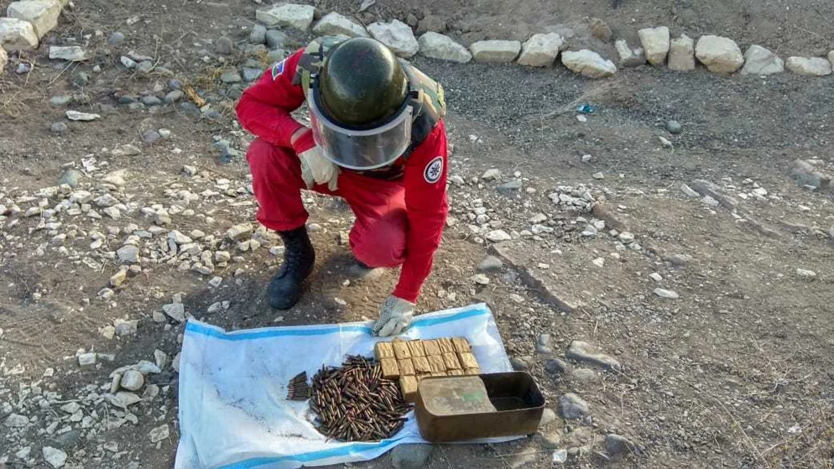 Top mərmisinin və patronların ətrafında 1 100 kv.m əraziyə yerüstü baxış keçirilib, əlavə təhlükəli əşya və qurğu aşkarlanmayıb.