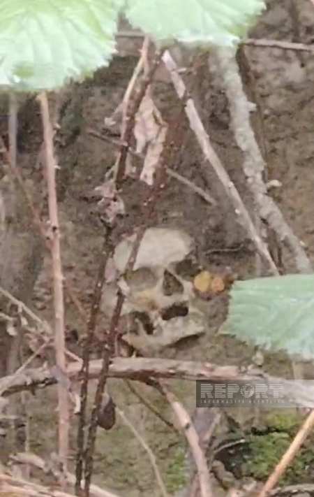 Nəticədə kənd məscidindən bir qədər aralıda yolun kənarında insana məxsus kəllə və çanaq sümükləri üzə çıxıb.