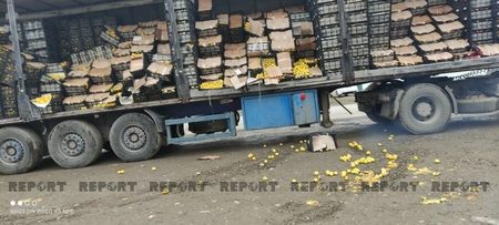 Qubada yük avtomobilindən alma yeşikləri yola dağılıb
