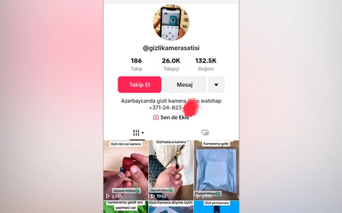 Araşdırma zamanı onun “TikTok”da “@gizlikamerasatisi” adlı səhifə yaradaraq sosial şəbəkə istifadəçilərinə qarşı qanunazidd hərəkətlərə yol verdiyi məlum olub.