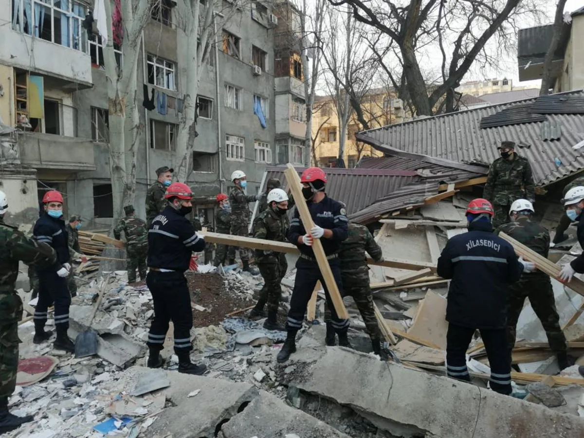 Abşeron rayonu, Xırdalan şəhəri, 27-ci məhəllə adlanan ərazidə yerləşən və partlayış nəticəsində uçqun baş vermiş ikimərtəbəli fərdi yaşayış evində Fövqəladə Hallar Nazirliyinin qəza-xilasetmə qüvvələri tərəfindən axtarış-xilasetmə əməliyyatı hələ də davam etdirilir.
