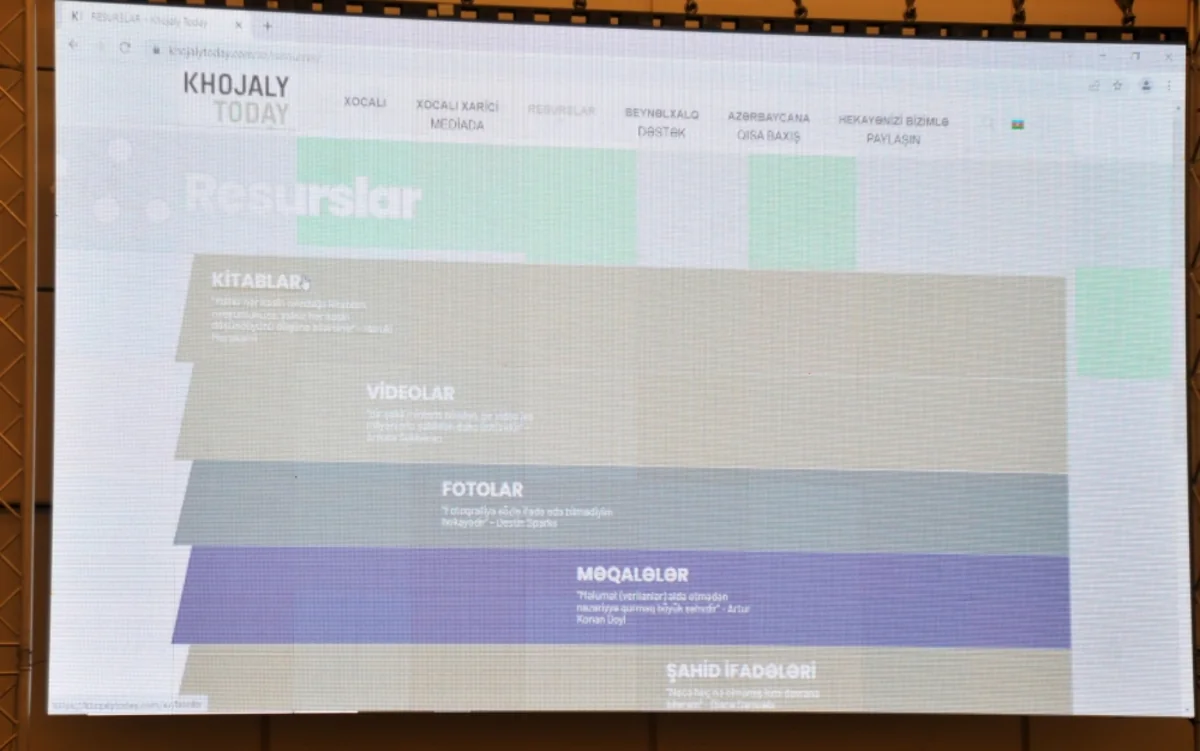 O da bildirilib ki, portalın “Öz hekayəni paylaş” bölməsi Xocalıdan və ümumiyyətlə, vaxtilə işğal olunmuş ərazilərdən məcburi köçkün düşmüş vətəndaşlarımızın yaşadıqları müsibətləri paylaşmaq imkanı verir. Bu baxımdan resurs bazası həm də məcburi köçkün olmuş şəxslərin öz hekayələrini dünya ictimaiyyətinə çatdırmaq üçün platforma rolunu oynayır.