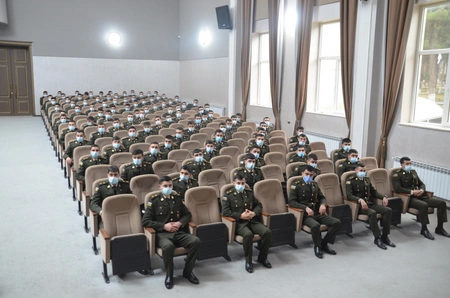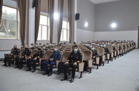 Qeyd edilib ki, Vətən müharibəsi zamanı hərbi təhsil müəssisəsinin şəxsi heyətinin də qələbədə böyük rolu olub. Belə ki, torpaqlarımızın işğaldan azad edilməsi uğrunda gedən döyüşlərdə təhsil ocağının 10 zabiti şəhid olub, 29-u isə yaralanıb. Daha sonra Müdafiə naziri general-polkovnik Zakir Həsənovun təbriki şəxsi heyətə çatdırılıb.