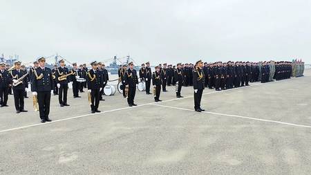 Daha sonra hərbi qulluqçular təntənəli marşlarla tribunaların önündən keçiblər.