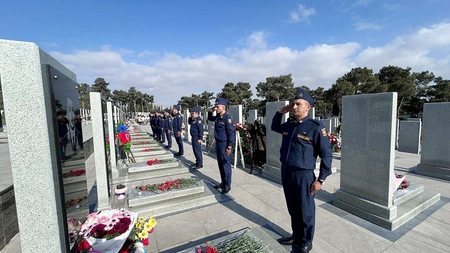 Tədbirlərdə hərbi qulluqçular şəhidlər xiyabanlarını ziyarət edərək Vətən uğrunda canından keçmiş igid döyüşçülərimizin məzarları üzərinə güllər düzüb, xatirələrini hörmət və ehtiramla yad ediblər.