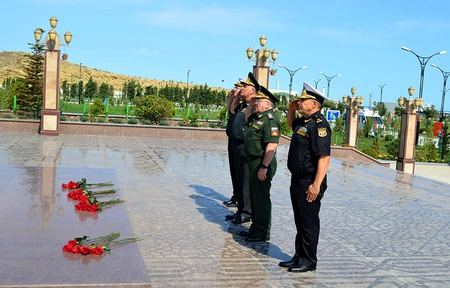 Əvvəlcə qonaqlar Hərbi Dəniz Qüvvələri qərargahı qarşısında ucaldılan ümummilli lider Heydər Əliyevin abidəsi önünə gül dəstələri qoyub, ehtiramlarını ifadə ediblər.