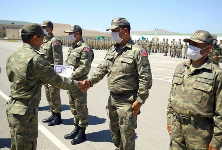 Birgə təlimlərdə iştirak edən hərbçilər üçün bayram mərasimi keçirilib