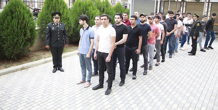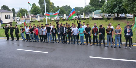 Sonda gənclər Azərbaycan bayrağının altından keçərək müddətli həqiqi hərbi xidmətə yola düşüblər.