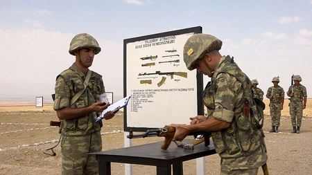 Səhra şəraitində və çətin relyefli ərazilərdə təşkil olunan məşğələlərdə komandirlər tərəfindən tabelikdə olanların silahla davranış qaydaları, nəzəri bilikləri və praktiki bacarıqları yoxlanılır.