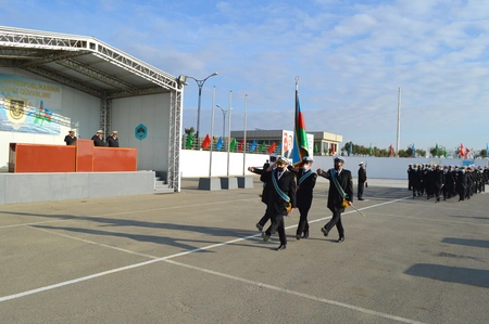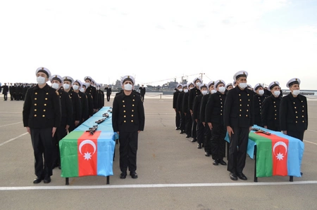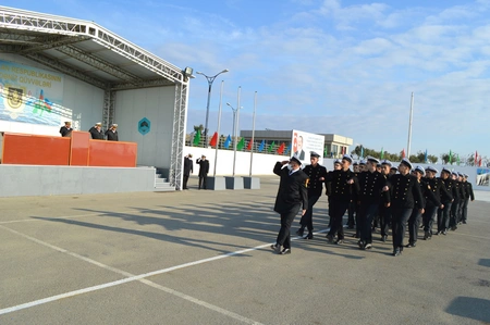Gənc matroslar təntənəli surətdə hərbi andı qəbul edərək Vətənə sadiq olacaqlarına söz veriblər.