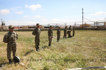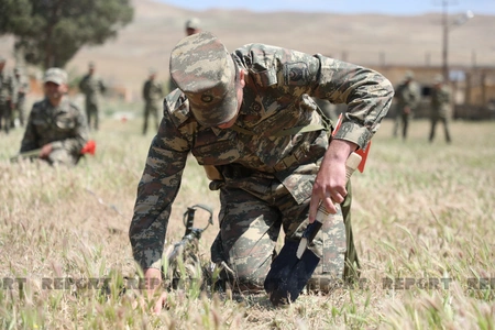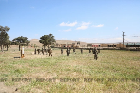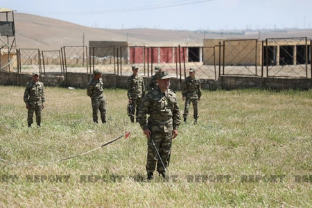 "Report" xəbər verir ki, praktiki dərs zamanı kursantlara "Ön mövqeyin qarşısında öz mina sahələrimizdən manqa tərkibində keçidlərin açılması" mövzusu tədris olunub.