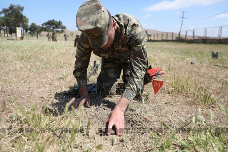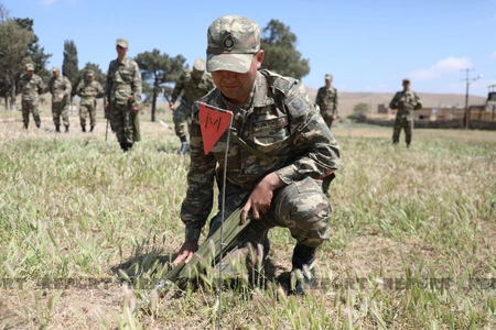 Azərbaycan Ordusunda müddətdən artıq həqiqi hərbi xidmət hərbi qulluqçu kimi xidmət etmək istəyən kursantlara Silahlı Qüvvələrin Təlim və Tədris Mərkəzində (TTM) mühəndis-istehkam manqa komandiri vəzifəsində praktiki dərslər keçirilib.