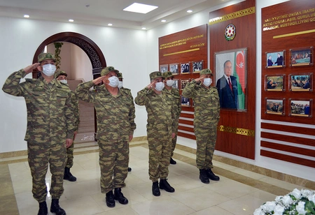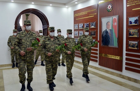 Müdafiə Nazirliyinin Şəxsi Heyət Baş İdarəsinin əməkdaşları qruplarla xalqımızın ümummmilli lideri, Əbədiyaşar Ali Baş Komandan Heydər Əliyevin anadan olmasının 98-ci ildönümündə idarənin inzibati binasında Ulu Öndərə həsr olunmuş güsəni ziyarət edərək büstü qarşısına qızılgüllər düzüb, xatirəsini hörmət və ehtiramla yad ediblər.