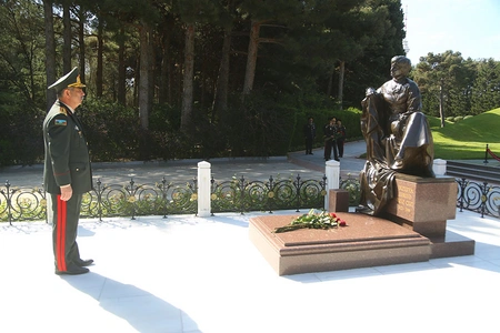 Müdafiə Nazirliyinin rəhbərliyi Fəxri və Şəhidlər xiyabanlarını ziyarət edib