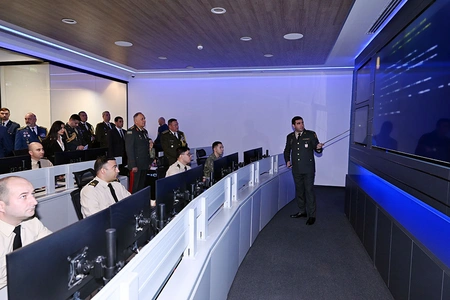 Azərbaycana rəsmi səfər çərçivəsində Hərbi Hava Qüvvələrinin (HHQ) Döyüşü İdarəetmə Mərkəzində olan qonaqlar burada yaradılmış şəraitlə tanış olublar. Onlara mərkəzin strukturu, iş prinsipi və fəaliyyət istiqaməti ilə bağlı brifinq təqdim edilib.