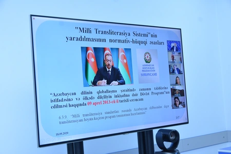 Onlayn tədbirdə çıxış edən Nəsimi adına Dilçilik İnstitutunun şöbə müdiri İlham Tahirov qeyd edib ki, Milli Transliterasiya Sistemində Azərbaycan dilinə xas olan mətnlərin 8 xarici dilə transliterasiyası – konvertasiyası həyata keçirilib. Alim ana dilimizdə olan şəxs adlarının, coğrafi adların, toponimlərin əcnəbi dillərə konvertasiyası prosesində qarşıya çıxan çətinliklər, xüsusilə “ə”, “ö”, “ü”, “ğ”, “ç” və “x” hərflərinin transliterasiyasının spesifik xüsusiy-yətləri barəsində ətraflı danışıb.
