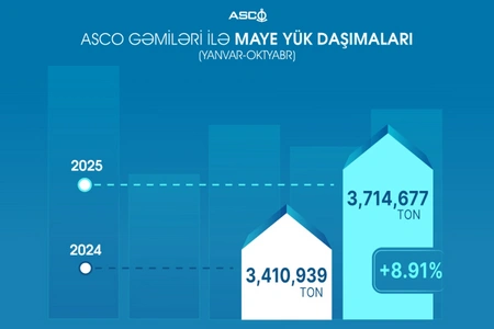 ASCO gəmiləri ilə maye və quru yük daşımaları 17 % artıb
