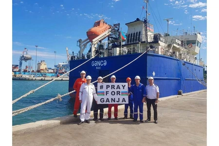 Dənizçilər İsrailin Hayfa limanında üzərində #PrayForGanja yazılan plakatlar açaraq foto çəkdirib və müxtəlif həştəqlərlə sosial şəbəkələrdə paylaşıblar.