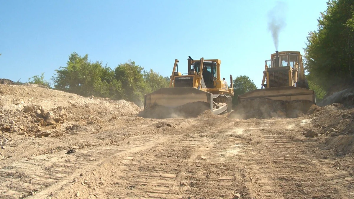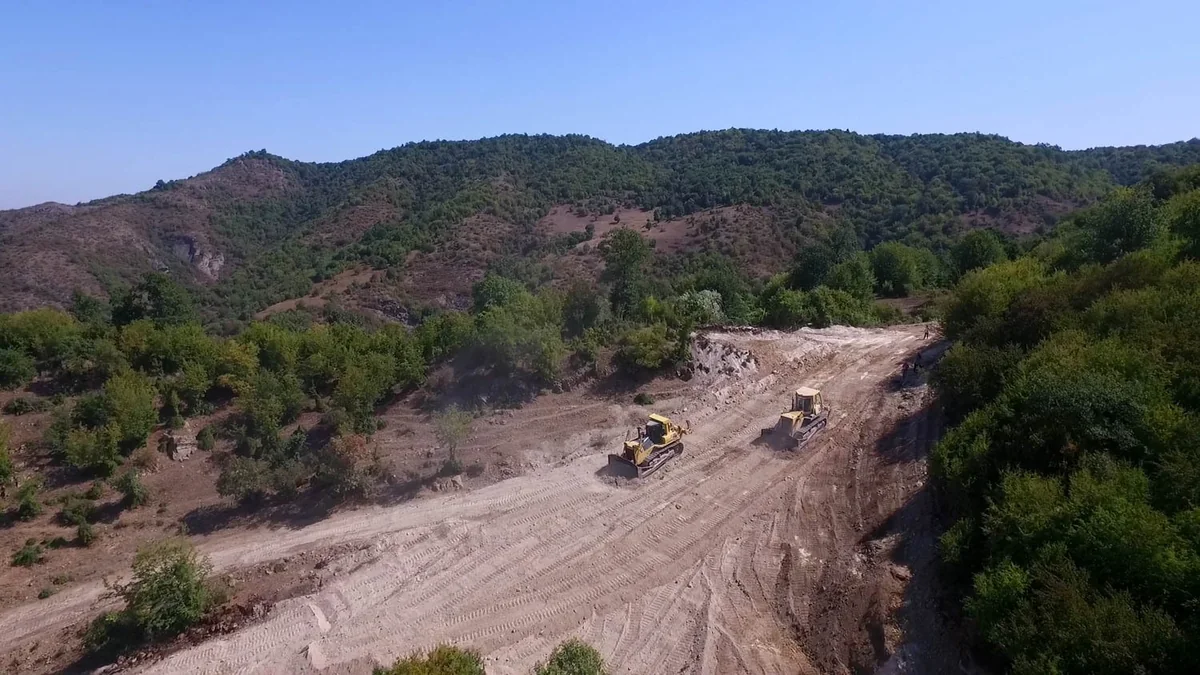 Tovuz rayonunda dağların partladılması üsulu ilə yeni yol salınır.
