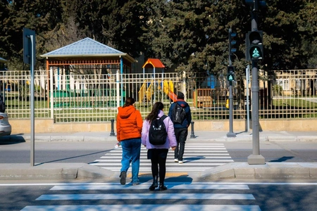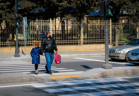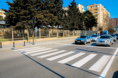 Bakıda yeni nizamlanan eyni səviyyəli piyada keçidi təşkil edilib