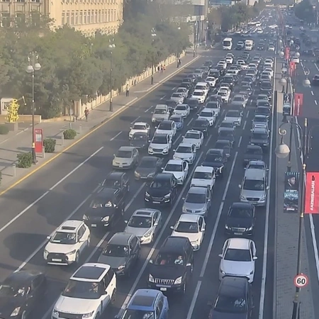 Bakının bir sıra yollarında nəqliyyatın sıxlığı müşahidə olunur.