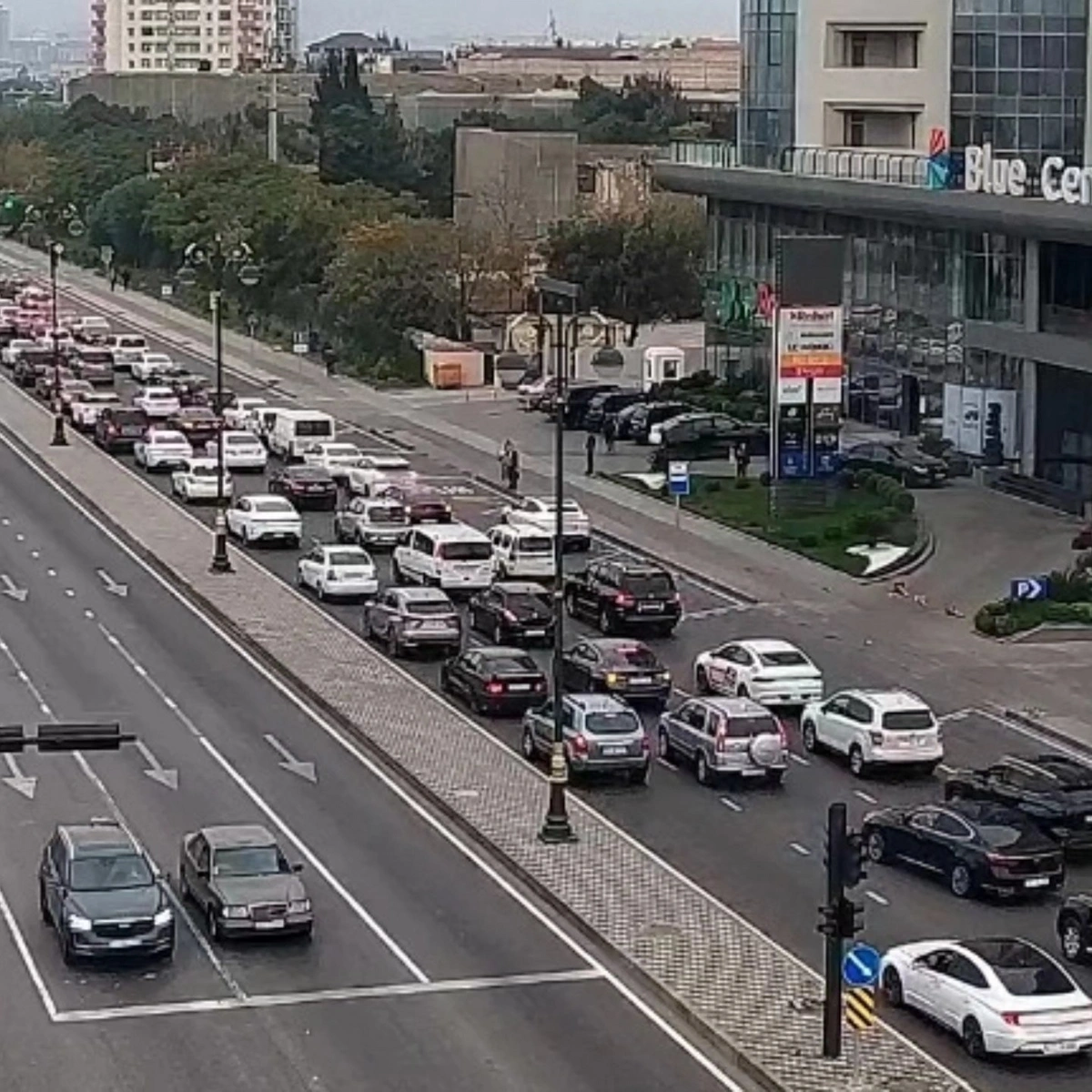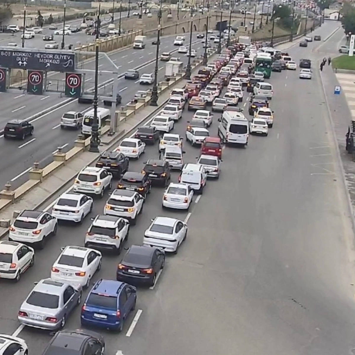 15. Heydər Əliyev prospekti, köməkçi yol, mərkəz istiqamətində sıxlıq müşahidə olunur.