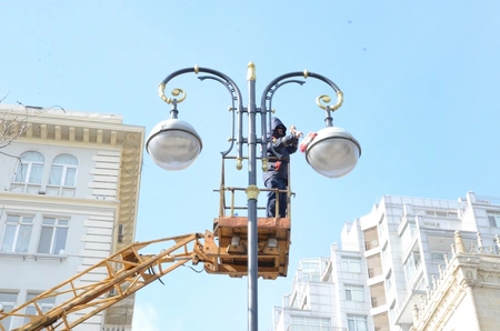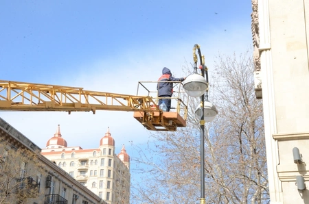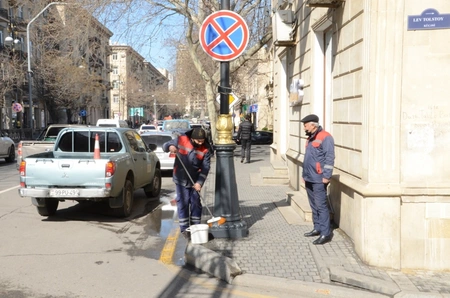 Bakının küçələri və elektrik dirəkləri yuyulub