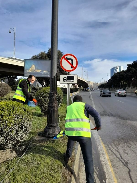 Eyni zamanda, Bakı Şəhər Yaşıllaşdırma Təsərrüfatı Trestinin əməkdaşları yol kənarlarındakı yaşıllıq zolaqlarını yuyaraq təmizləmiş, sınmış ağaclar budanmış, digər lazımı işlər həyata keçirilib.