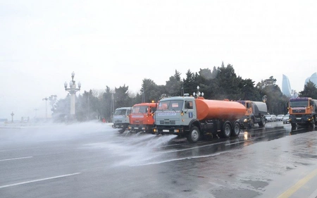 Bakı küçələrini 40 xüsusi texnika və 2 000 nəfər dezinfeksiya edir