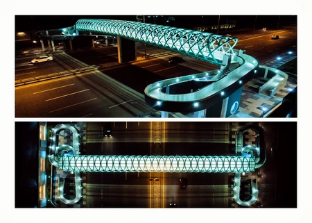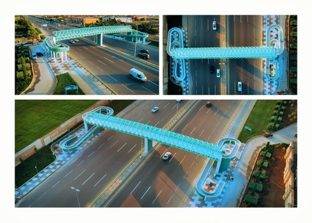 Piyada keçidinin ümumi uzunluğu panduslarla birlikdə 180 metr təşkil edir. Keçiddə yaşlı adamların, fiziki məhdudiyyətli insanların, uşaq arabalı valideynlərin rahat hərəkətini təmin etmək üçün müasir, beynəlxalq standartlara uyğun, 80 maillikli piyada pandusları quraşdırılıb.