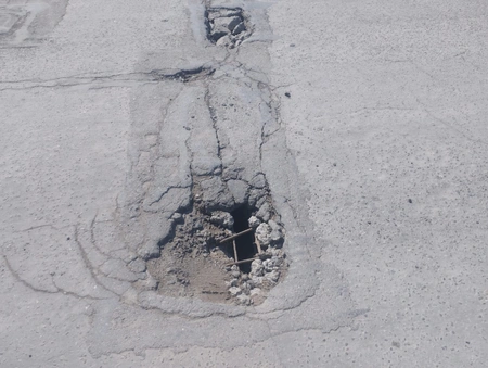 Panellər arasında iri oyuqlar yaranıb, həmin oyuqlar isə beton parçalarla doldurulub.