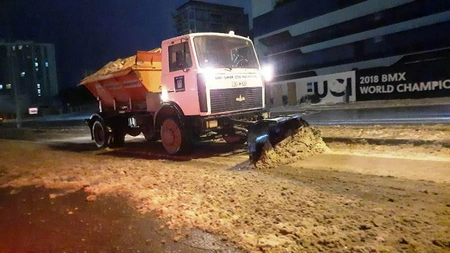 Gecə saatlarından səhərə kimi Bakı Şəhər İcra Hakimiyyətinin kommunal strukturları və aidiyyəti qurumlar küçə və prospektlərin qar və buzdan təmizlənməsini davam etdirib və xüsusi təyinatlı texnika vasitəsi ilə yollara duz və reagentlərin səpilməsi işləri aparılıb.