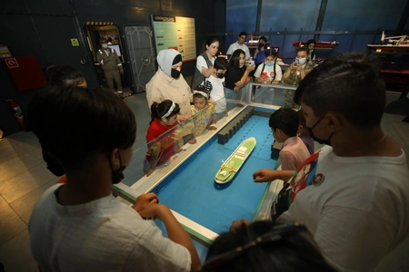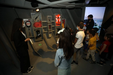 Uşaqlar bələdçilərin müşaiyəti ilə dünyanın ilk tanker-muzeyinin zallarını gəzib, gəmiçiliyə aid eksponatlarla yaxından tanış olublar. Onlar həmçinin oyun manipulyatorlarından istifadə edərək müxtəlif gəmi əməliyyatlarını yerinə yetiriblər.