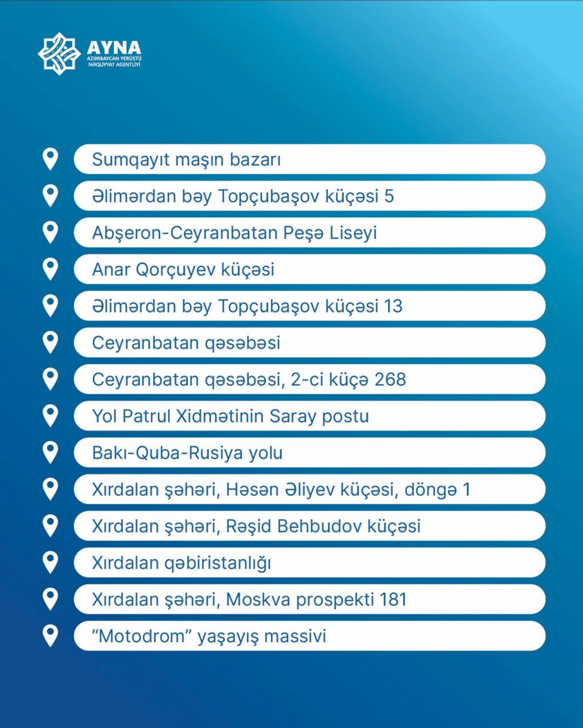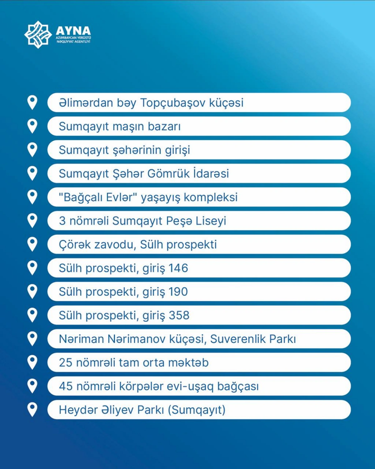 Sumqayıtdan paytaxta təşkil edilən yeni müntəzəm marşrutun dayanacaq məntəqələri açıqlanıb