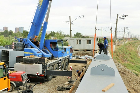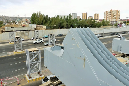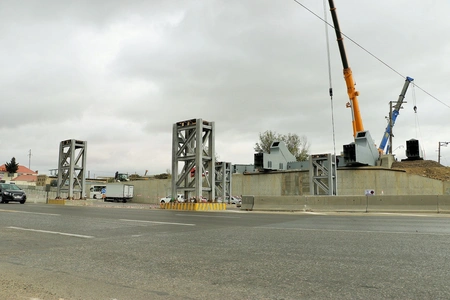 Bakı-Quba-Rusiya ilə dövlət sərhədi avtomobil yolunun Xırdalan dairəsi yaxınlığında yeni dəmir yolu körpüsünün metal konstruksiyalı aşırım tirlərinin montajına başlanılıb.