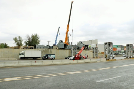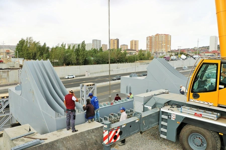 Xırdalan dairəsindəki yeni körpünün aşırım tirlərinin montajına başlanılıb