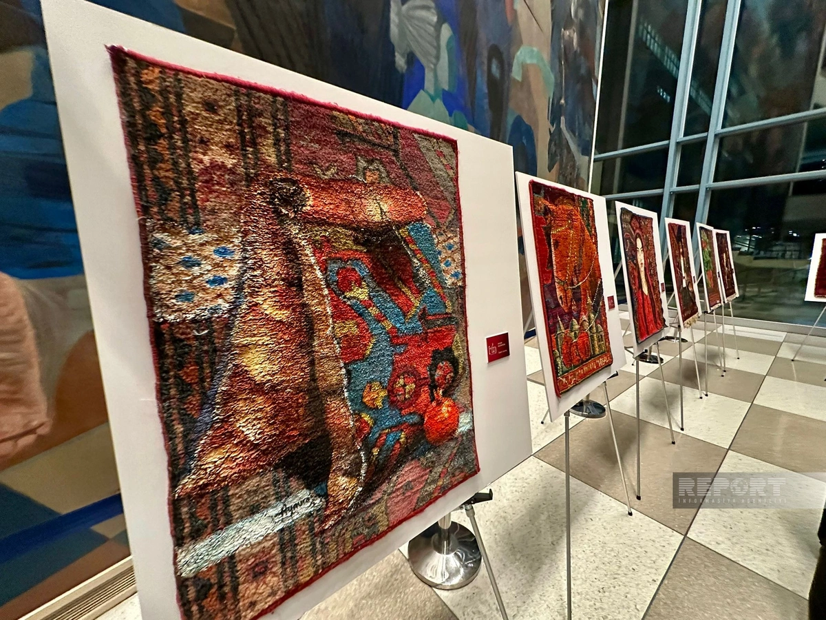 Sərgidə BMT Baş Assambleyasının zalında üzərində "Azerbaycan" yazısı olan kürsünün təsvir edildiyi xalça böyük marağa səbəb olub. Həmçinin üzərində nar, tar musiqi aləti, Azərbaycanın ərazi bütövlüyünü əks etdirən xəritə və milli geyimli Azərbaycan qadını təsvir edilən xalça kompozisiyaları qonaqlar tərəfindən maraqla qarşılanıb. İştirakçılar sərgi əsərlərinin qarşısında xatirə şəkilləri çəkdiriblər. Noyabr ayının 28-nə kimi davam edəcək sərgi Azərbaycanın xalça irsi ilə müasir incəsənətin sintezini beynəlxalq auditoriyaya təqdim etməyi hədəfləyir.
