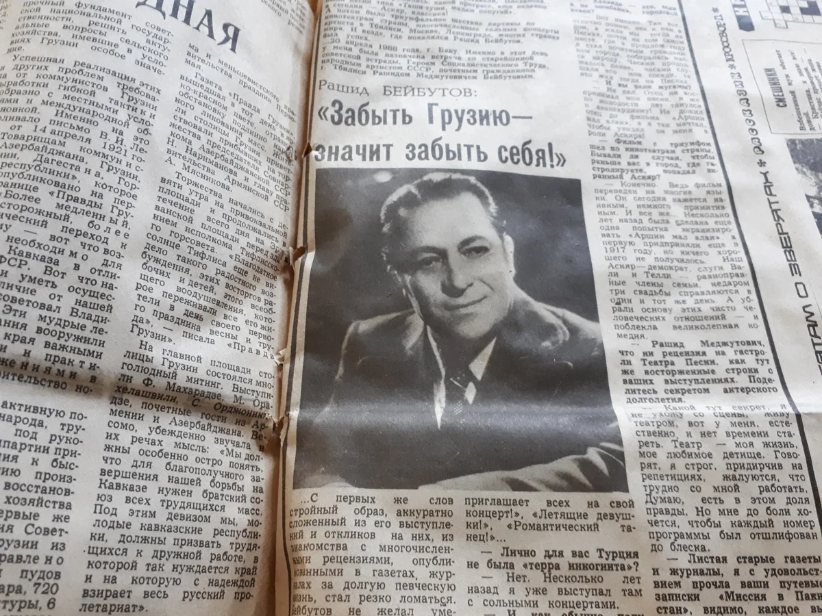 Bu gün dünya şöhrətli müğənni, Azərbaycan və SSRİ-nin Xalq artisti Rəşid Behbudovun anadan olmasından 105 il ötür. Böyük sənətkar 1915-ci ilin dekabrın 14-də Tbilisidə anadan olub. Məşhur tbilisili vəfatından bir il öncə - 1988-ci ilin aprelində “Veçerni Tbilisi” qəzetinə müsahibə verib. “Gürcüstanı unutmaq – özümü unutmaq deməkdir!” sərlövhəli müsahibənin yer aldığı qəzet nömrəsi Gürcüstanın Milli Parlament Kitabxanasının arxivində saxlanılır. Arxivdə R.Behbudova aid bir neçə fotoşəklə də rast gəlinir.