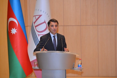 Tədbirdə ADA Universitetinin prorektoru Fariz İsmayılzadə və Xarici İşlər Nazirliyinin Mətbuat xidməti idarəsinin rəisi Leyla Abdullayeva çıxış ediblər. Çıxışlarda İkinci Dünya müharibəsində soydaşlarımızın göstərdiyi şücaət haqqında danışılıb və gənclərin bu istiqamətdə məlumatlılığının, habelə tariximizi daha dərindən öyrənmələrinin əhəmiyyətini vurğulanıb. Müstəqilliyimiz bərpa edildiyi vaxtdan etibarən ilk dəfə olaraq 9 May Qələbəsinin ikiqat fəxarətlə qeyd olunduğu vurğulanıb, bu xüsusda 2020-ci il 44 günlük Vətən müharibəsində Ali Baş Komandan İlham Əliyevin rəhbərliyi altında torpaqlarımızı işğaldan azad edən Müzəffər Azərbaycan Ordusunun qazandığı tarixi Zəfərin əhəmiyyətindən bəhs edilib. Bütün şəhidlərin xatirəsi 1 dəqiqəlik sükutla anılıb.