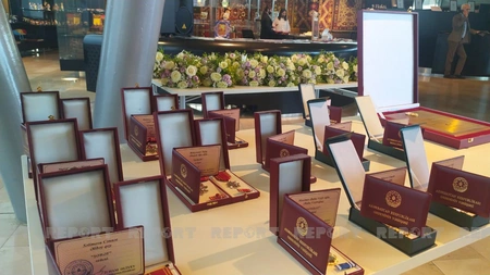 Sonda nazir Anar Kərimov təltif olunan şəxslərlə foto çəkdirib.