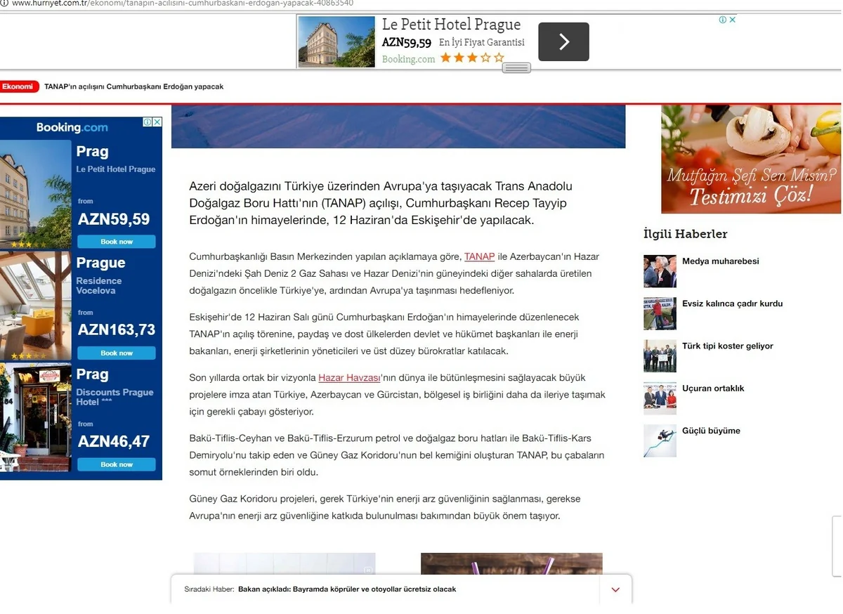 Bakı. 12 iyun. REPORT.AZ/ Türkiyə mətbuatı Trans Anadolu Təbii Qaz Boru Kəməri (TANAP) layihəsinin bu gün Eskişehirdə baş tutacaq açılışı ilə bağlı mövzuya böyük diqqət yetirib.
